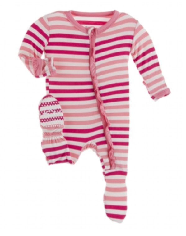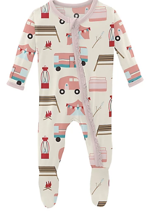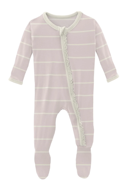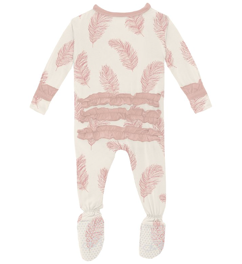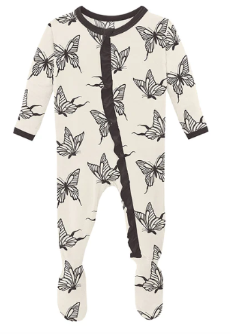 Good news! Our beloved Ruffle Footie now comes with a zipper! All the same comfy, ruffly goodness, with the ease of a zipper for quick changes.