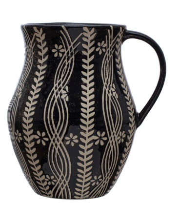 2-1/2 Quart Stoneware Pitcher w/ Wax Relief Floral Pattern